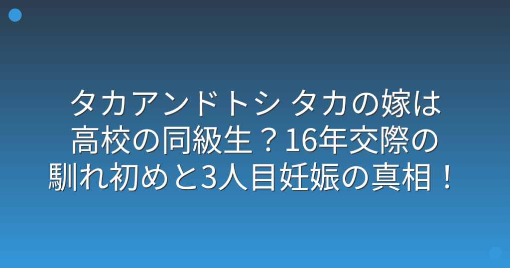 タカアンドトシ タカの嫁は高校の同級生?16年交際の馴れ初めと3人目妊娠の真相!