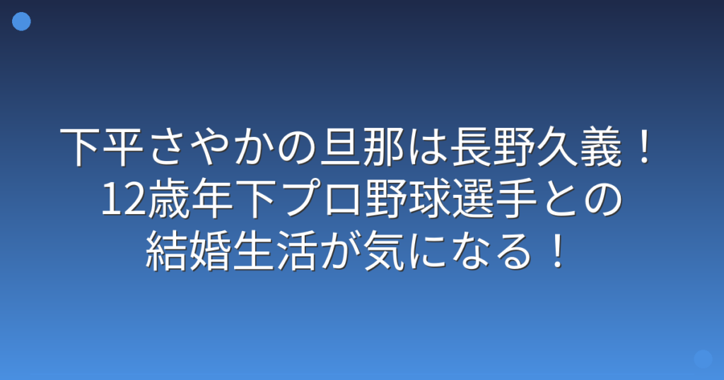 テレビ朝日の人気アナウンサー・下平さやかさんと、プロ野球選手の長野久義さんの結婚生活が注目を集めています。 特に最近、長野さんの引退発表に伴い、下平さやかさんの夫への思いや、12歳差のある夫婦の生活ぶりが話題となっていますね。 そこで今回は...