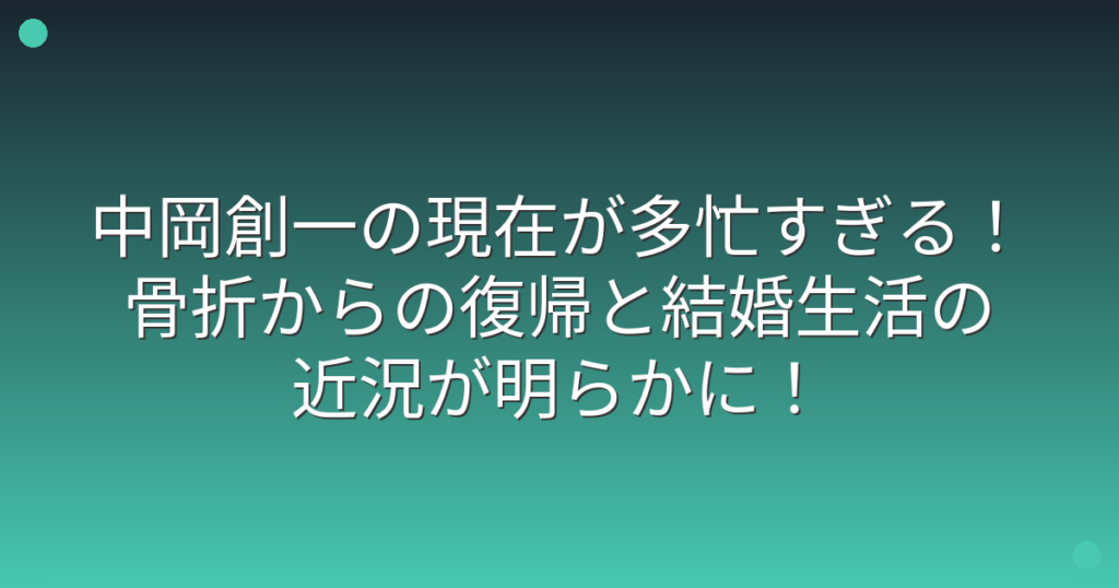 中岡創一の現在が多忙すぎる!骨折からの復帰と結婚生活の近況が明らかに!