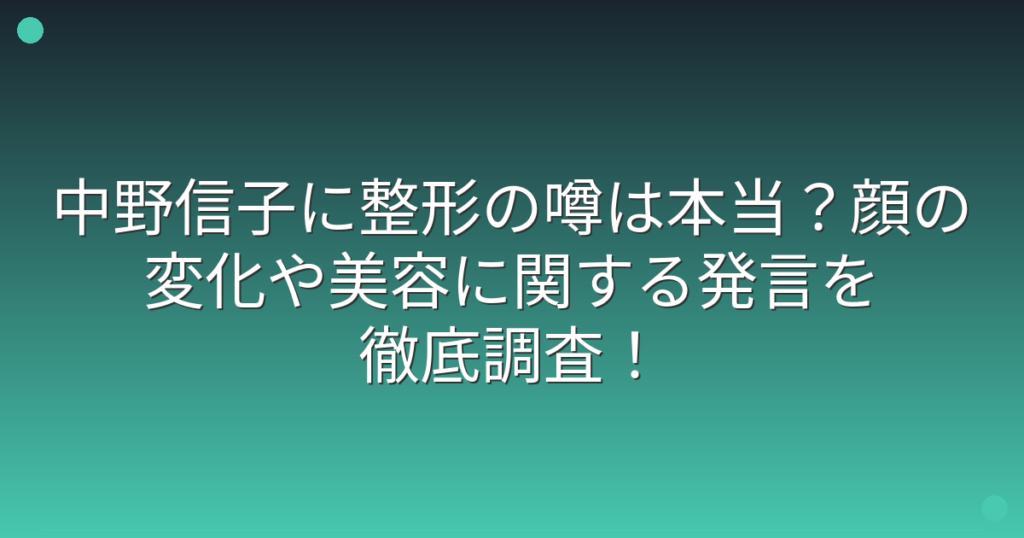 中野信子に整形の噂は本当?顔の変化や美容に関する発言を徹底調査!