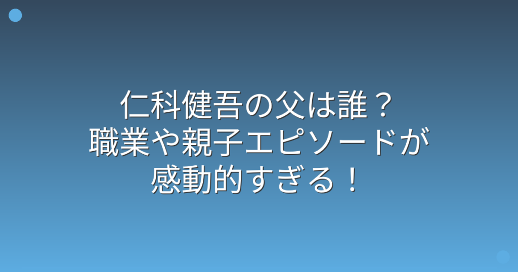 仁科健吾の父は誰?職業や親子エピソードが感動的すぎる!