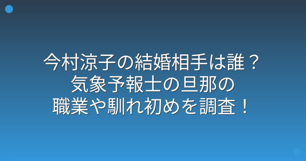今村涼子の結婚相手は誰?気象予報士の旦那の職業や馴れ初めを調査!