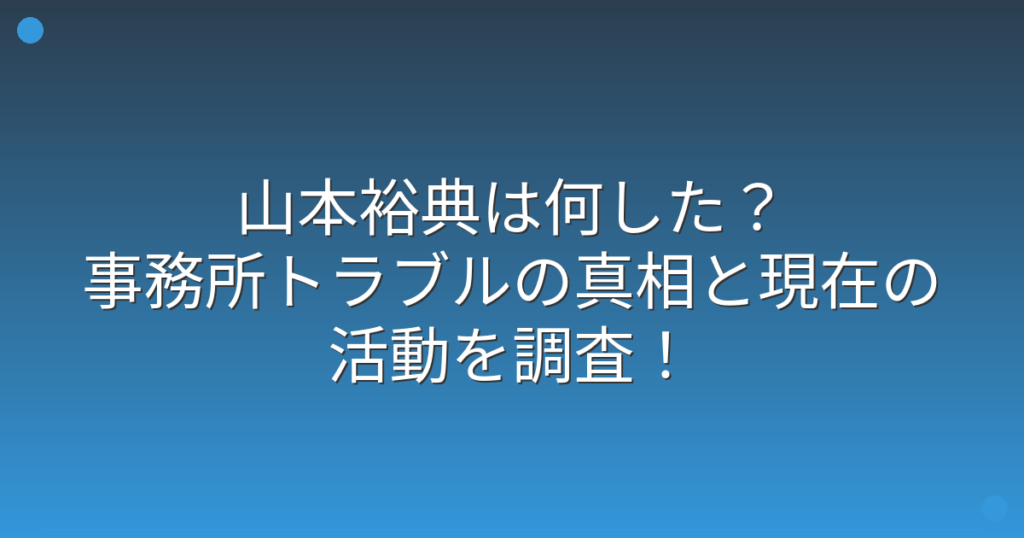 山本裕典は何した?事務所トラブルの真相と現在の活動を調査!