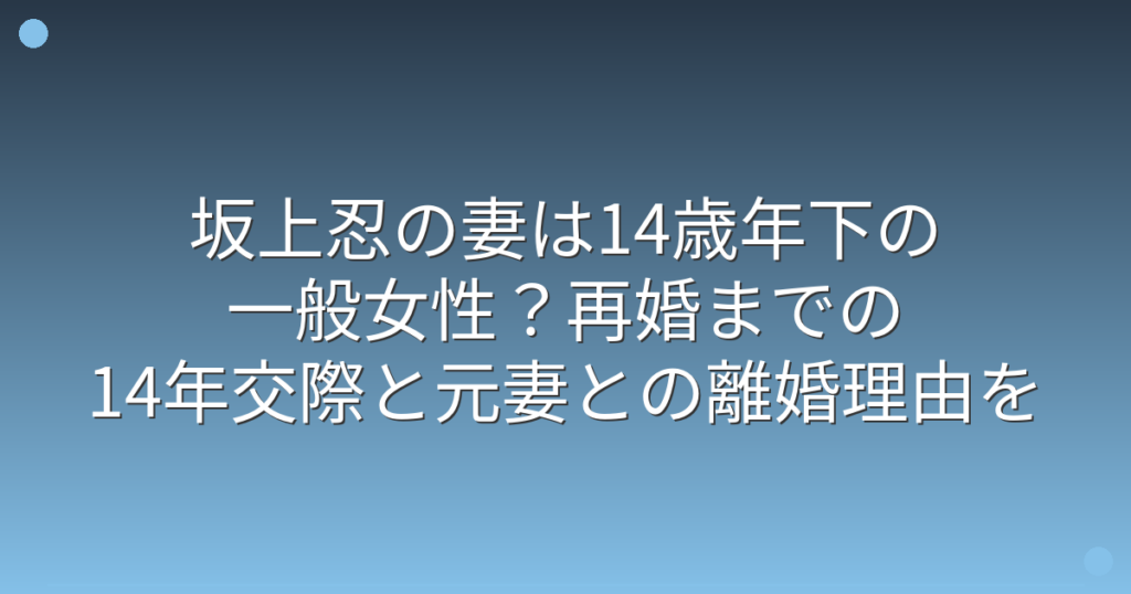 坂上忍の妻は14歳年下の一般女性?再婚までの14年交際と元妻との離婚理由を調査!