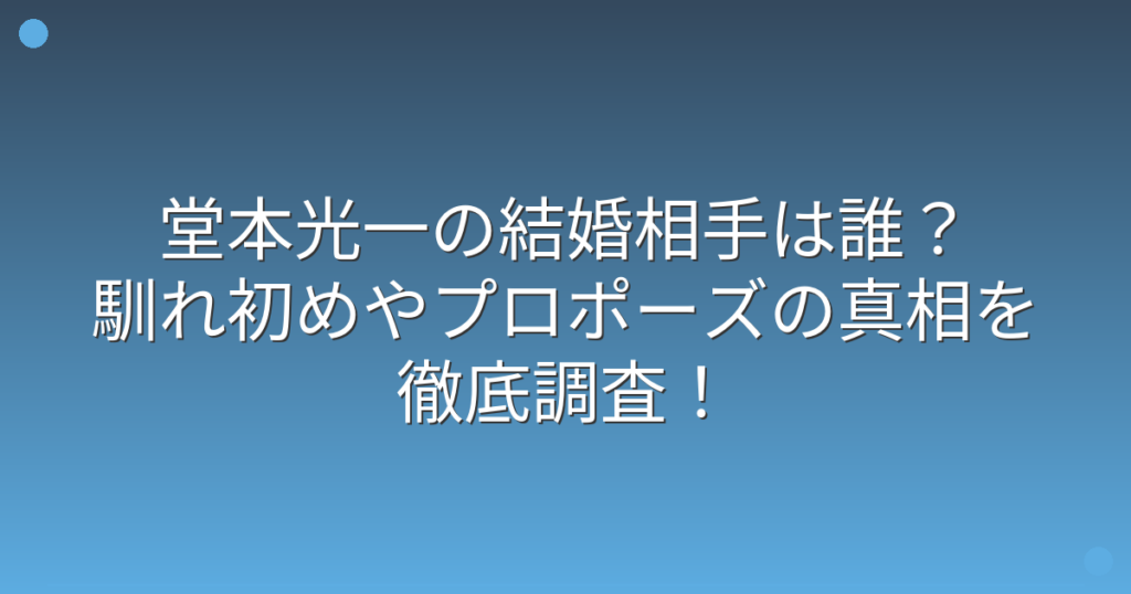 堂本光一の結婚相手は誰?馴れ初めやプロポーズの真相を徹底調査!