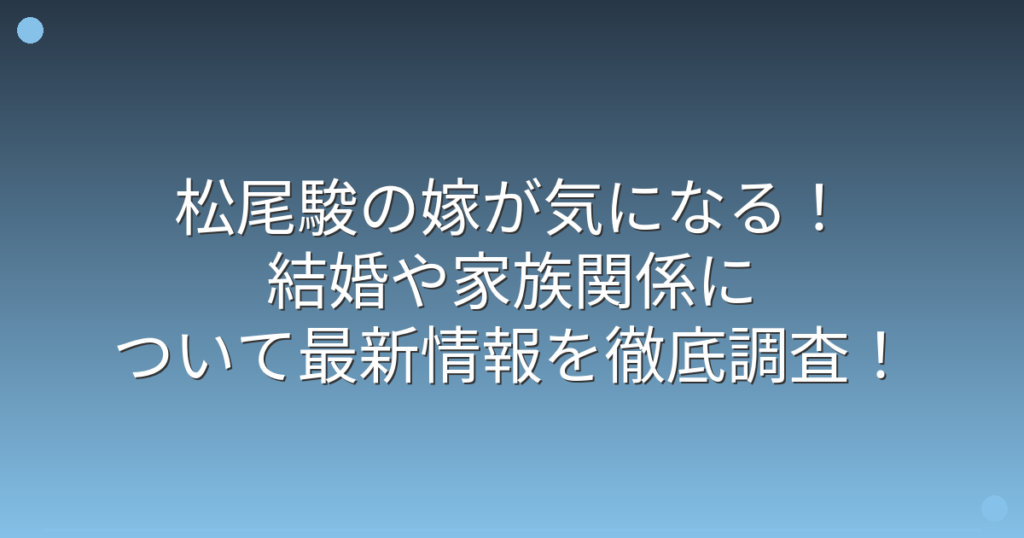 松尾駿の嫁が気になる!結婚や家族関係について最新情報を徹底調査!