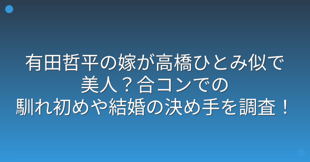 有田哲平の嫁が高橋ひとみ似で美人?合コンでの馴れ初めや結婚の決め手を調査!