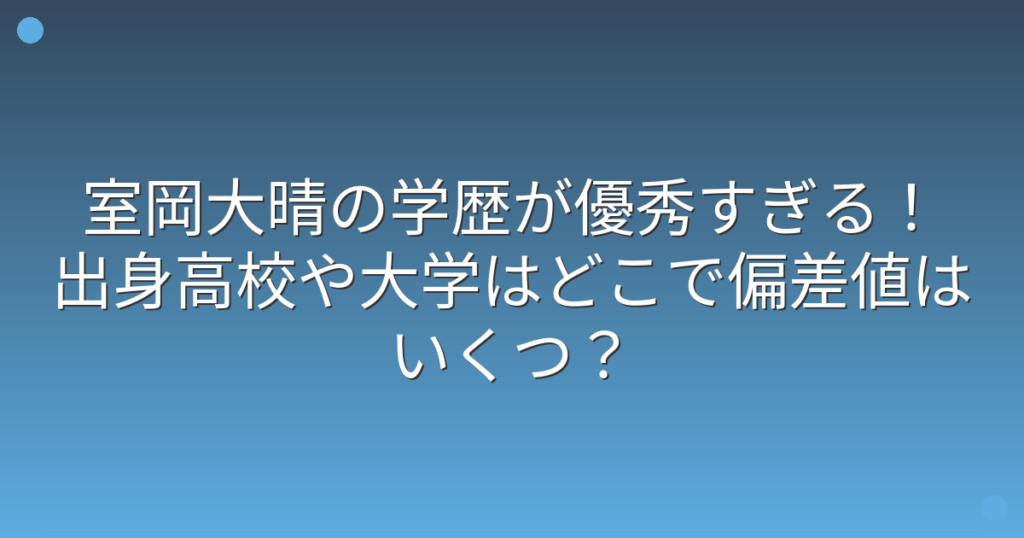 室岡大晴の学歴が優秀すぎる!出身高校や大学はどこで偏差値はいくつ?