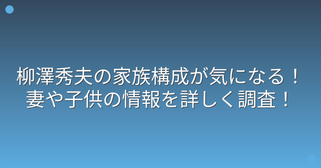 NHKの解説委員として長年活躍され、現在も多方面で活動されている柳澤秀夫さんの家族について、ファンの間で話題になっていますね。 報道の第一線で活躍する柳澤さんですが、プライベートな家族構成についてはあまり知られていません。 そこで今回は、柳澤... -