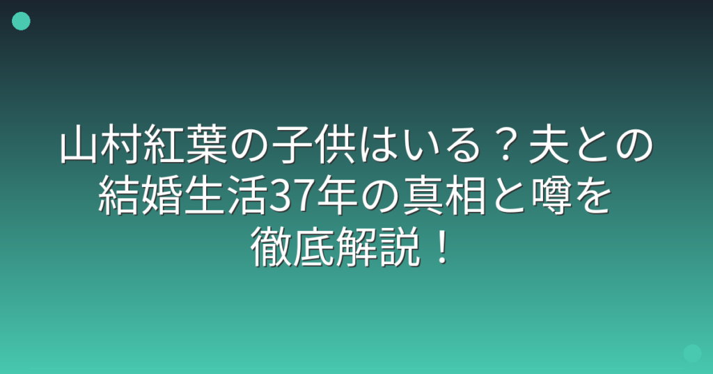 山村紅葉の子供はいる?夫との結婚生活37年の真相と噂を徹底解説!