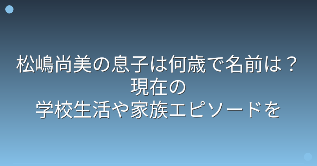 松嶋尚美の息子は何歳で名前は?現在の学校生活や家族エピソードを調査!