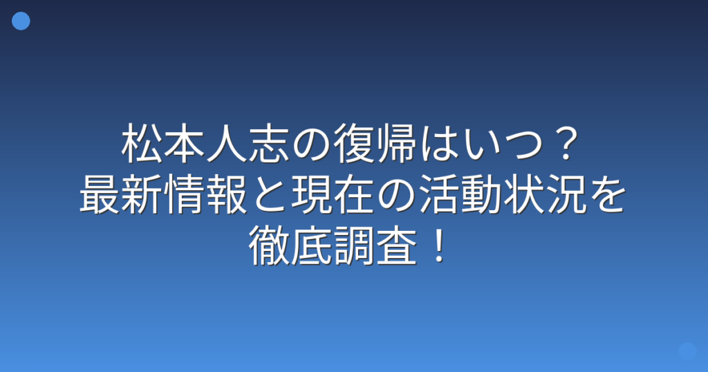 松本人志の復帰はいつ?最新情報と現在の活動状況を徹底調査!