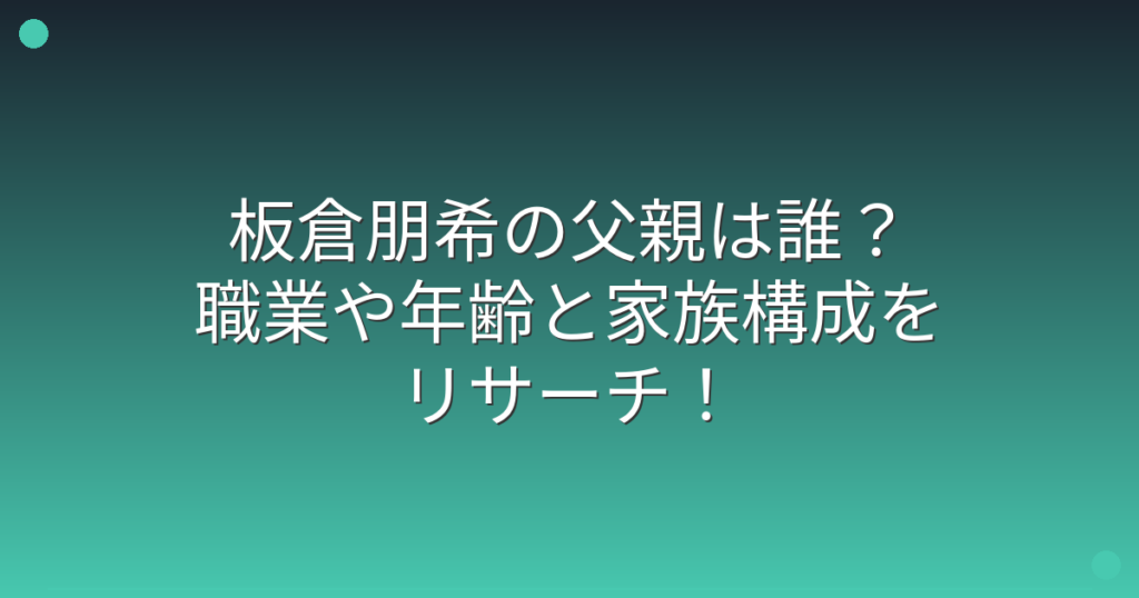 板倉朋希の父親は誰?職業や年齢と家族構成をリサーチ!