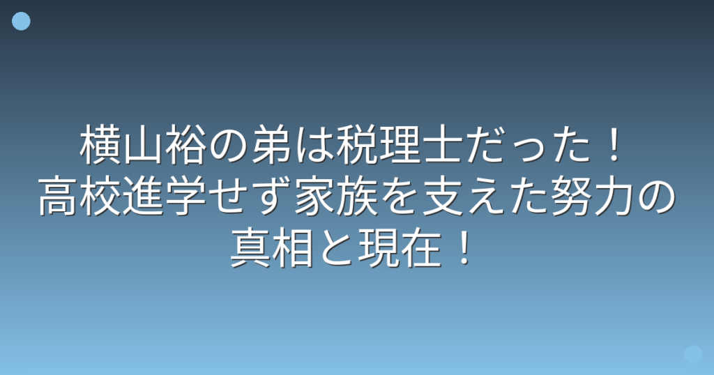 横山裕の弟は税理士だった!高校進学せず家族を支えた努力の真相と現在!