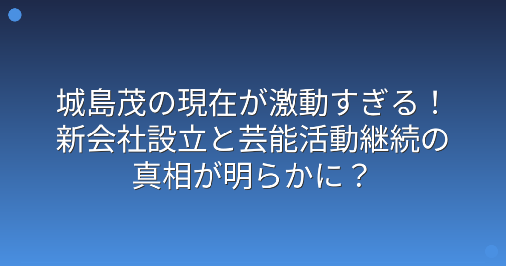 城島茂の現在が激動すぎる!新会社設立と芸能活動継続の真相が明らかに?