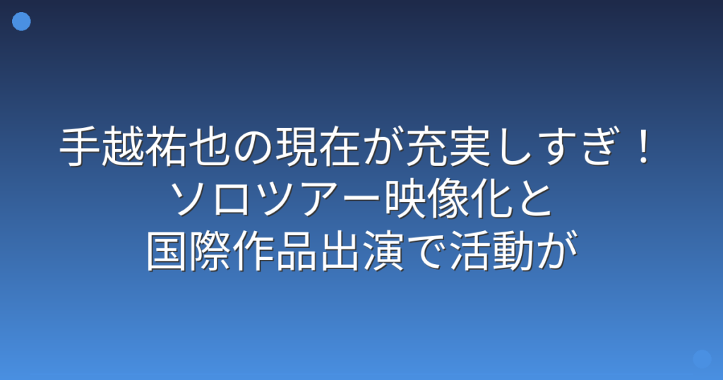 手越祐也の現在が充実しすぎ!ソロツアー映像化と国際作品出演で活動が爆発的拡大?