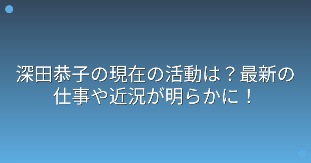 女優の深田恭子さんの現在の様子が、ファンの間で話題になっていますね。 一時期は体調不良で休養されていた深田恭子さんですが、現在はどのような活動をされているのでしょうか。 そこで今回は、深田恭子さんの現在の仕事や近況、最新の活動について詳し...