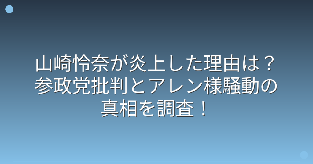 山崎怜奈が炎上した理由は?参政党批判とアレン様騒動の真相を調査!