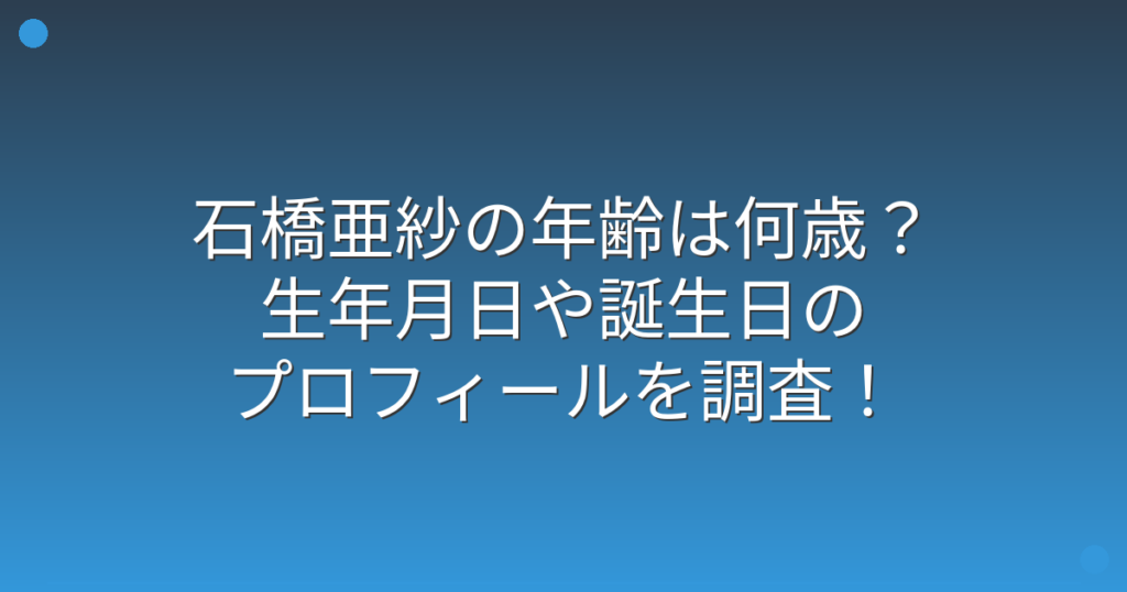 石橋亜紗の年齢は何歳?生年月日や誕生日のプロフィールを調査!