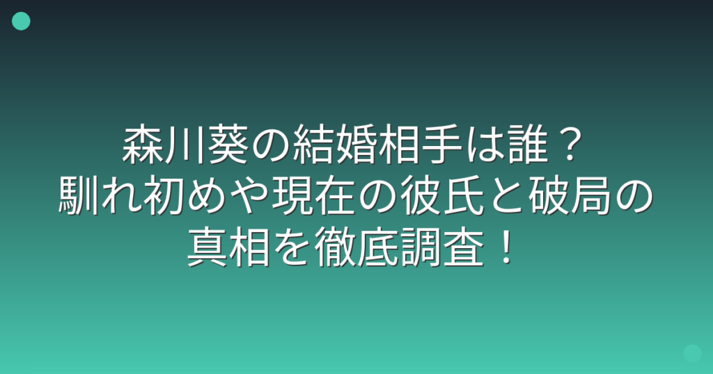 女優として活躍する森川葵さんの結婚や恋愛事情が話題になっていますね。 29歳という結婚適齢期を迎え、過去には複数の熱愛報道がありましたが、現在の恋愛状況や結婚の可能性について気になっている方も多いのではないでしょうか。 そこで今回は、森川葵... -