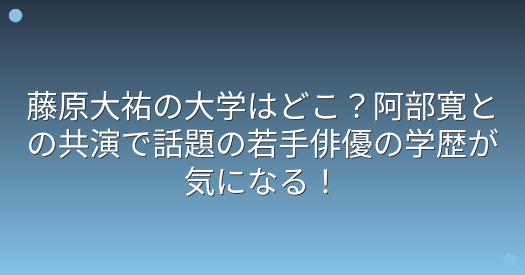 藤原大祐の大学はどこ?阿部寛との共演で話題の若手俳優の学歴が気になる!