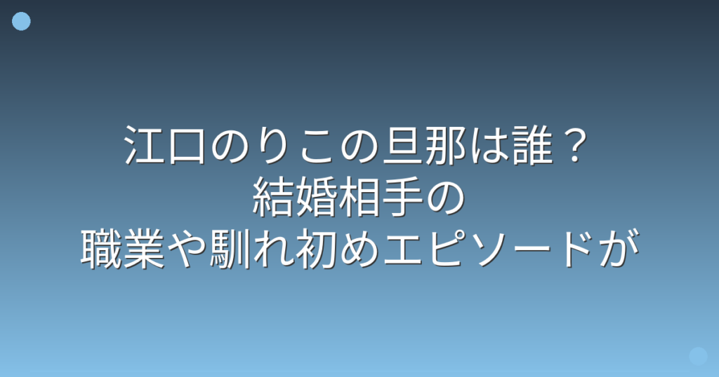 江口のりこの旦那は誰?結婚相手の職業や馴れ初めエピソードが明らかに!