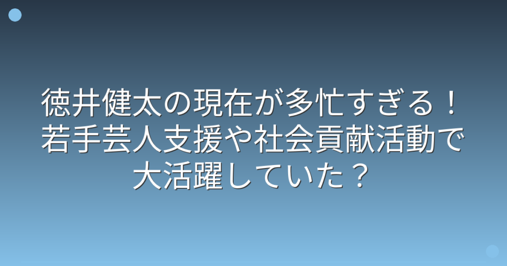 徳井健太の現在が多忙すぎる!若手芸人支援や社会貢献活動で大活躍していた?