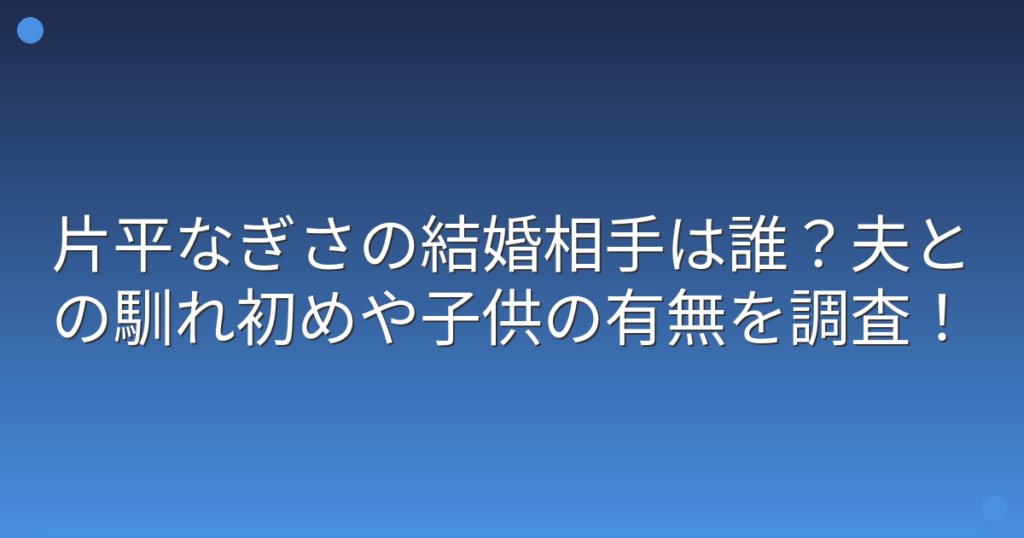片平なぎさの結婚相手は誰?夫との馴れ初めや子供の有無を調査!