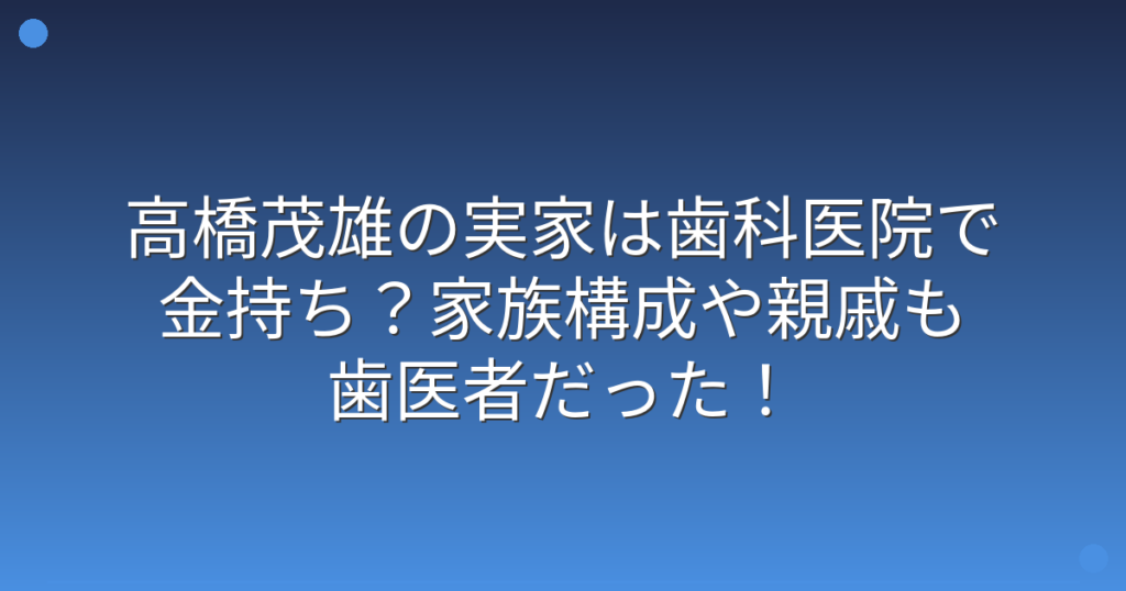 高橋茂雄の実家は歯科医院で金持ち?家族構成や親戚も歯医者だった!