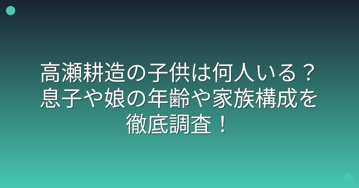 特に高瀬耕造さんの子供について、息子さんや娘さんはいるのか、何人いるのかなど、詳しい情報を知りたいという声が多く聞かれます。