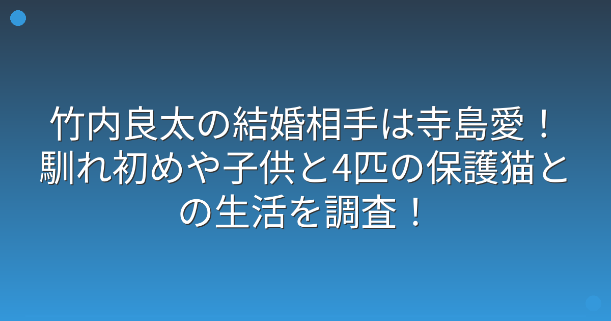そこで今回は、竹内良太さんの結婚相手や馴れ初め、お子さんの有無、そして4匹の保護猫との生活について詳しく見ていきましょう!