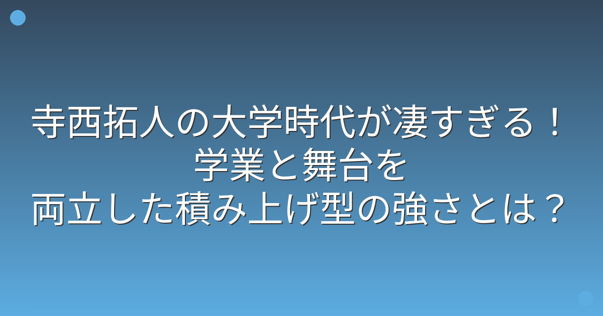 寺西拓人さんは大学時代に学業と舞台活動を両立し、「両立力」と「再現性のある実力」を培ってきたことが分かりました。
