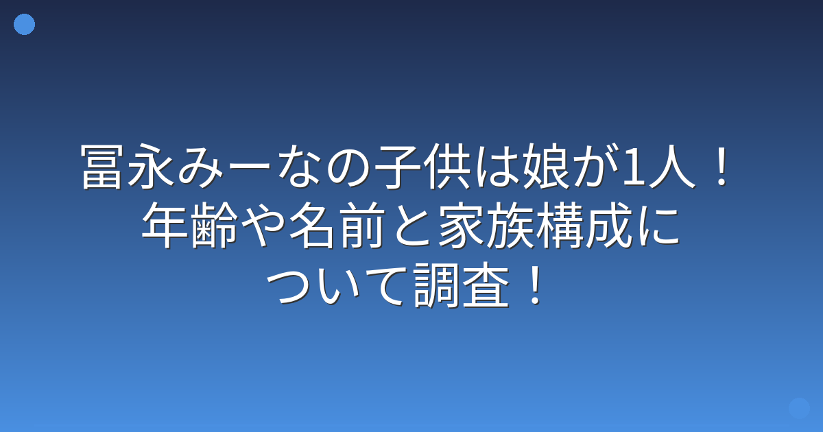 冨永みーなさんの家族構成は、ご主人と娘さんの3人家族と言われています。