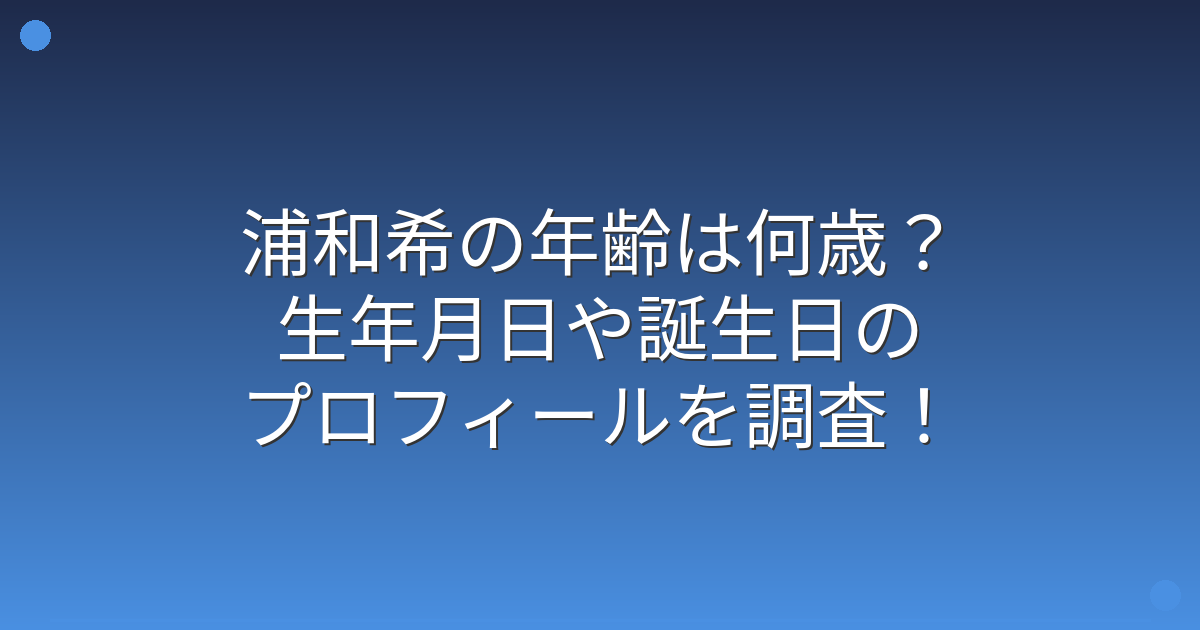 浦和希さんの年齢について、複数の情報源から調査してみました。