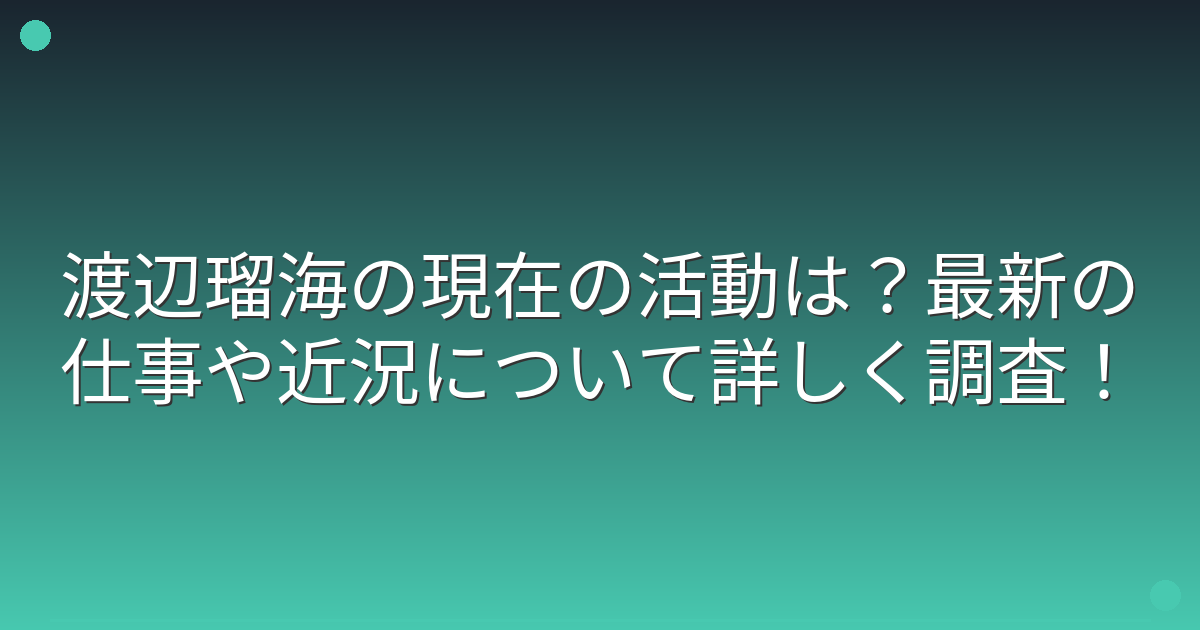 今回は、渡辺瑠海さんの現在の活動状況や最新の仕事内容、近況についてお伝えしてきました。