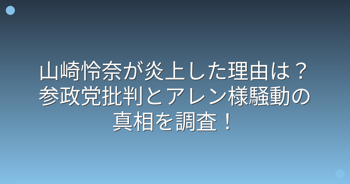 今回は、山崎怜奈さんの炎上理由や参政党批判、アレン様との騒動についてお伝えしてきました。