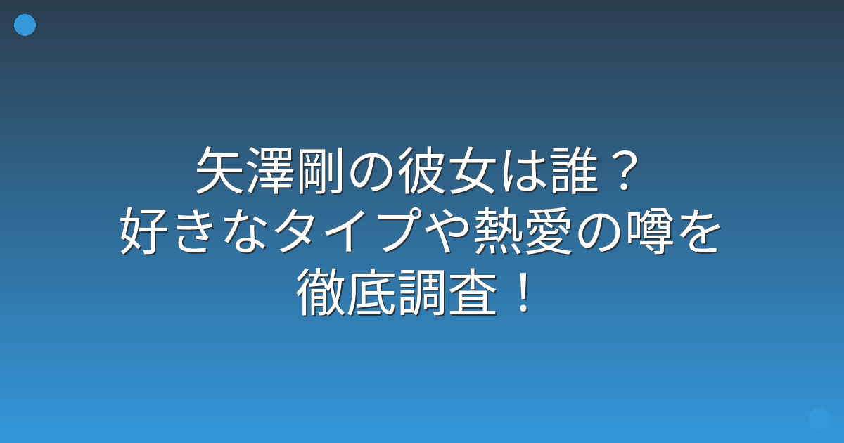 複数の報道を調査したところ、現時点で矢澤剛さんに彼女がいるという確実な情報は見つかりませんでした