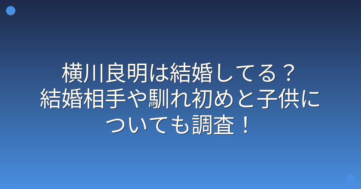 そこで今回は、横川良明さんの結婚の有無や結婚相手、馴れ初めや子供について詳しく見ていきましょう!