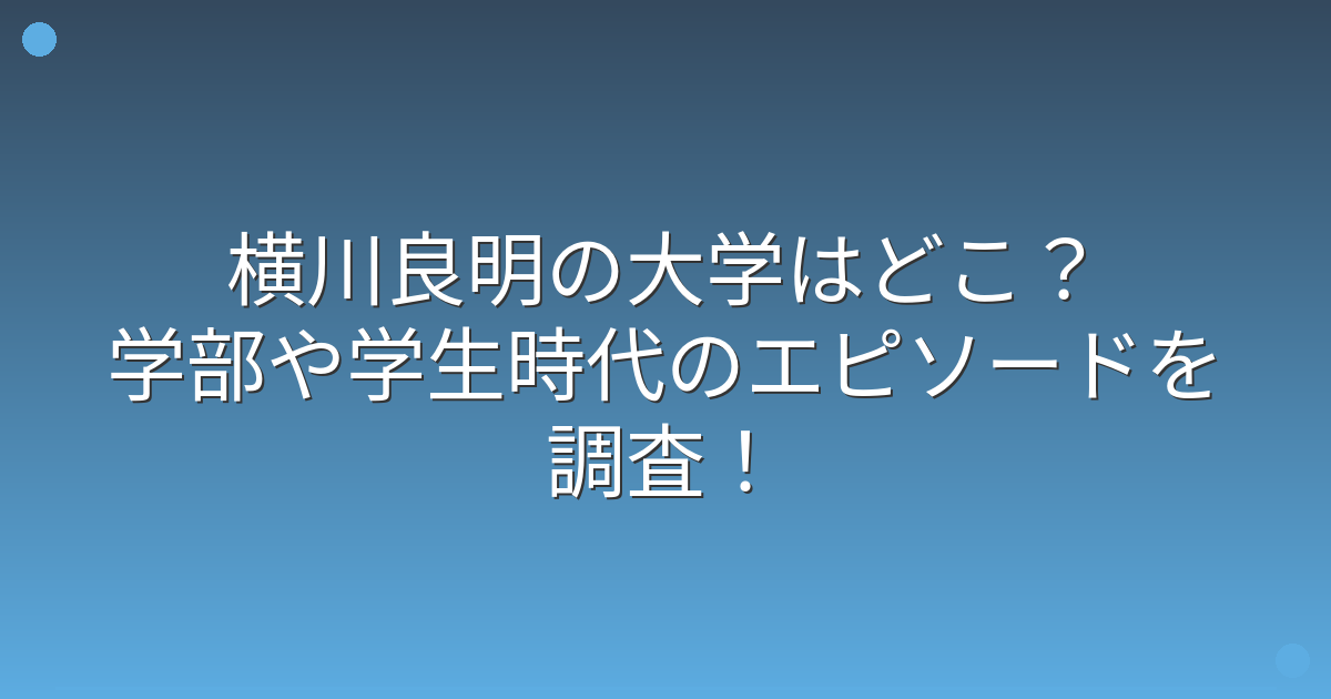 残念ながら、横川良明さんの具体的な大学名や学部、偏差値については公表されておらず、詳細は不明のままです。